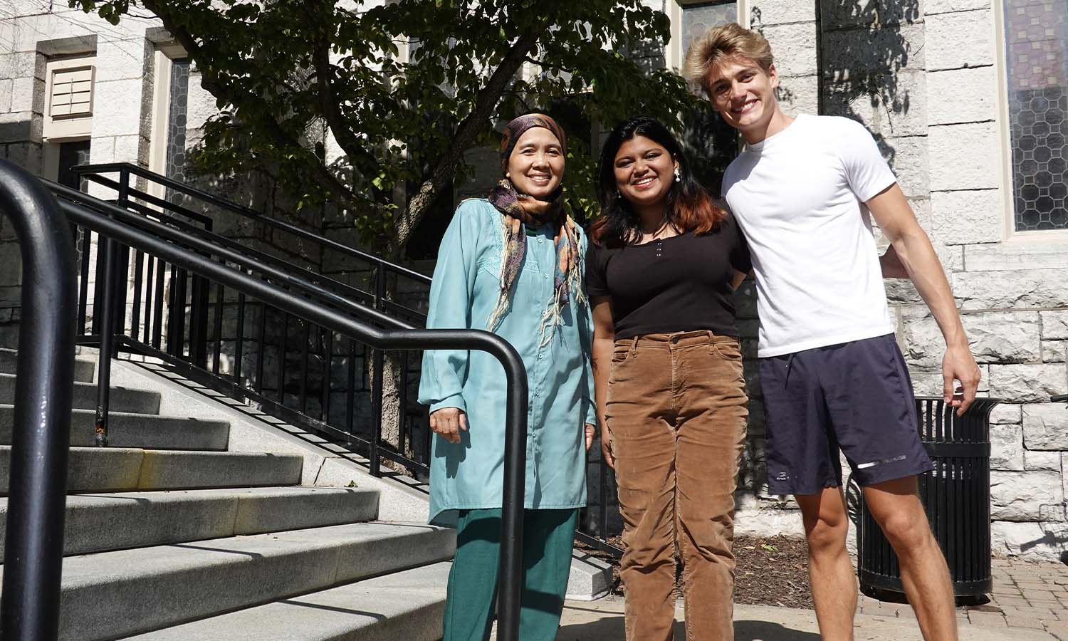 Top: Professor of Religious Studies Etin Anwar chats with Fairooj Suhita ’27.