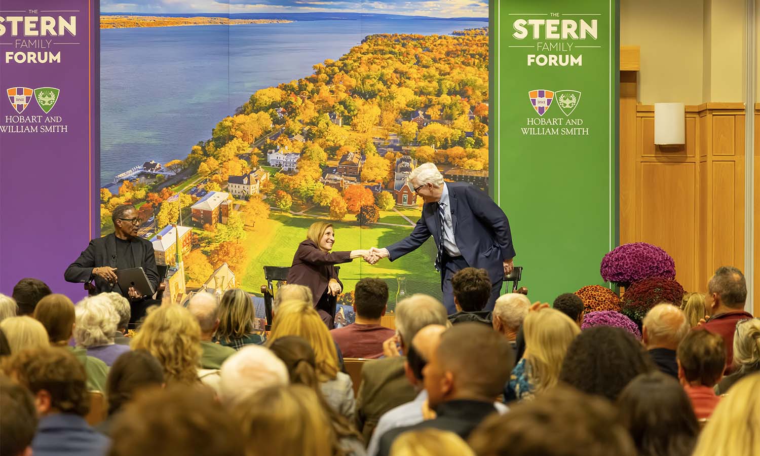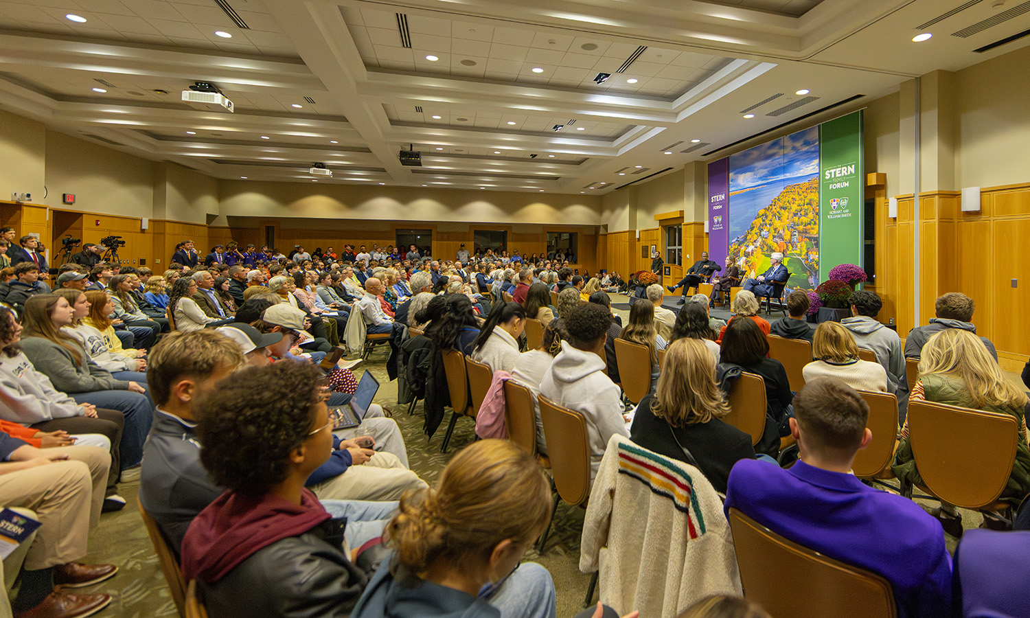 The Stern Family Forum was created for moments like this: to promote open, informed and respectful dialogue on important and often divisive issues. It was established through the generosity of Honorary Trustee Herbert J. Stern ’58, P’03, LL.D. ’74, and his son, Trustee Samuel A. Stern ’03, who thanked the audience for the impressive turnout to this, the fourth Forum.