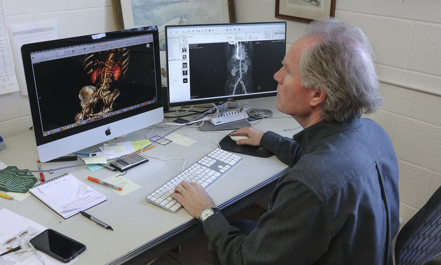 - Professor of Biology James Ryan researches human anatomy in his office. This year, Ryan co-authored the Horos User Guide, a manual for Horos project software that has enabled medical professionals to view MRI, CT and PET scans and utilize those 3D images in medical diagnostics.