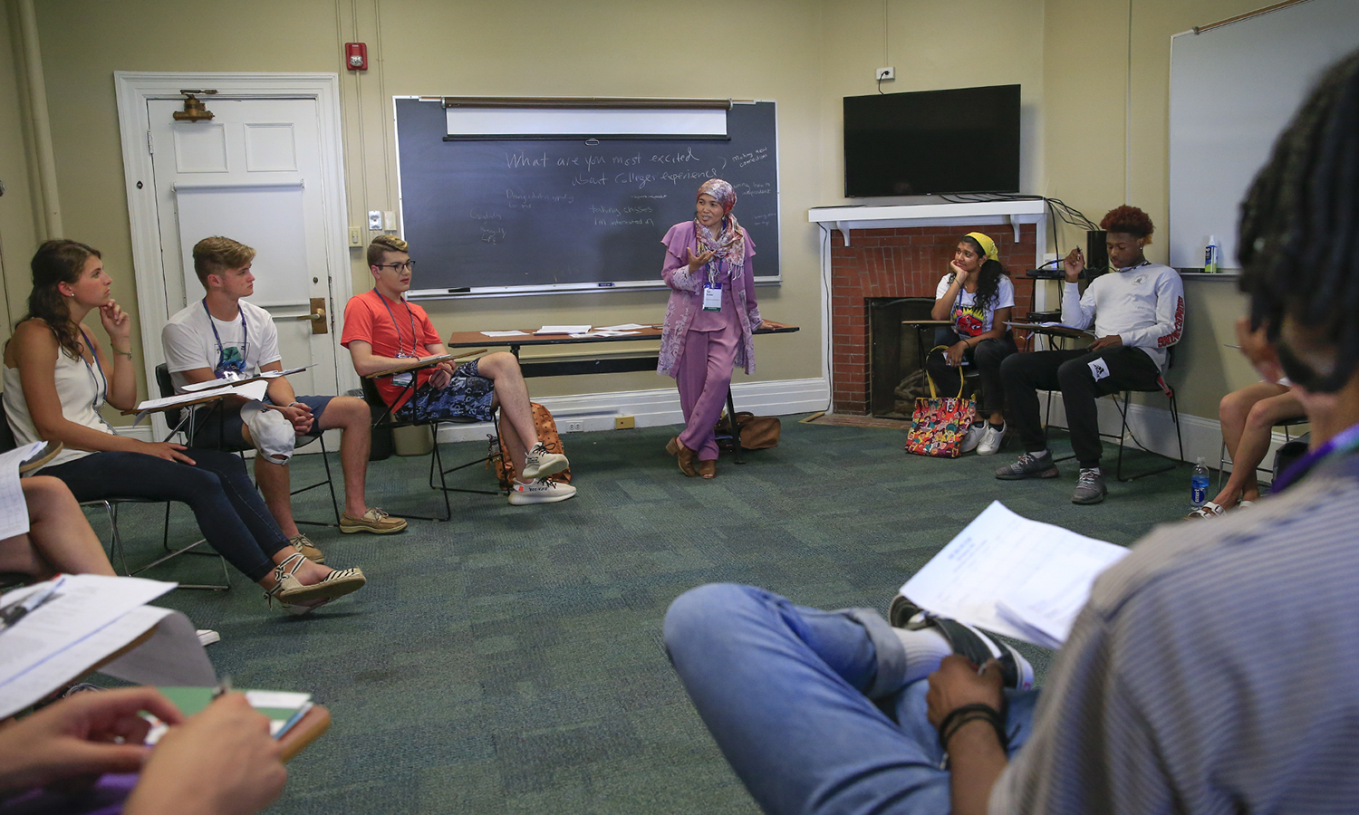 - Associate Professor of Religious Studies Etin Anwar engages students in a class discussion during Facets of Islam.