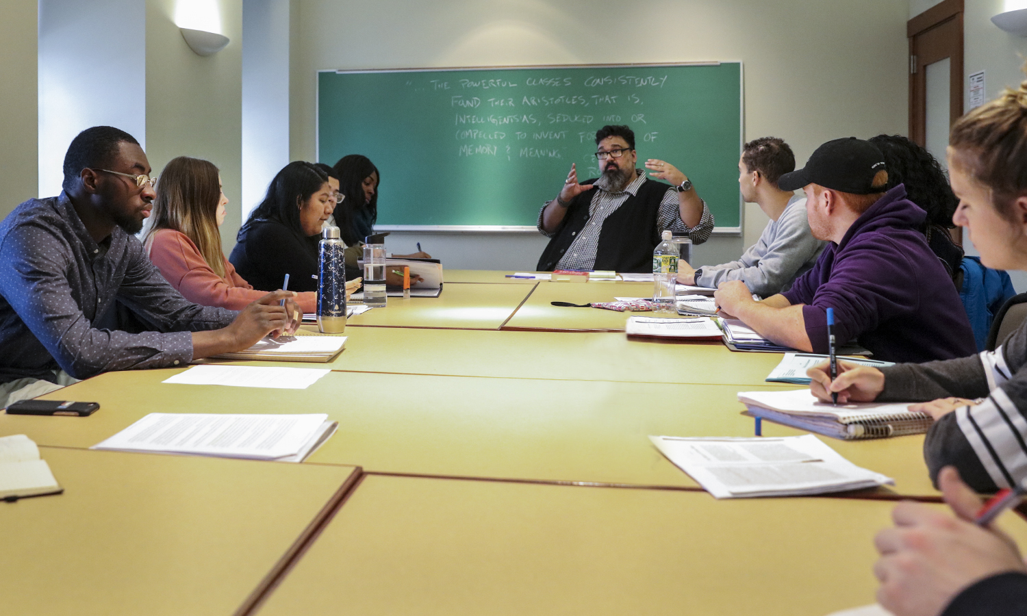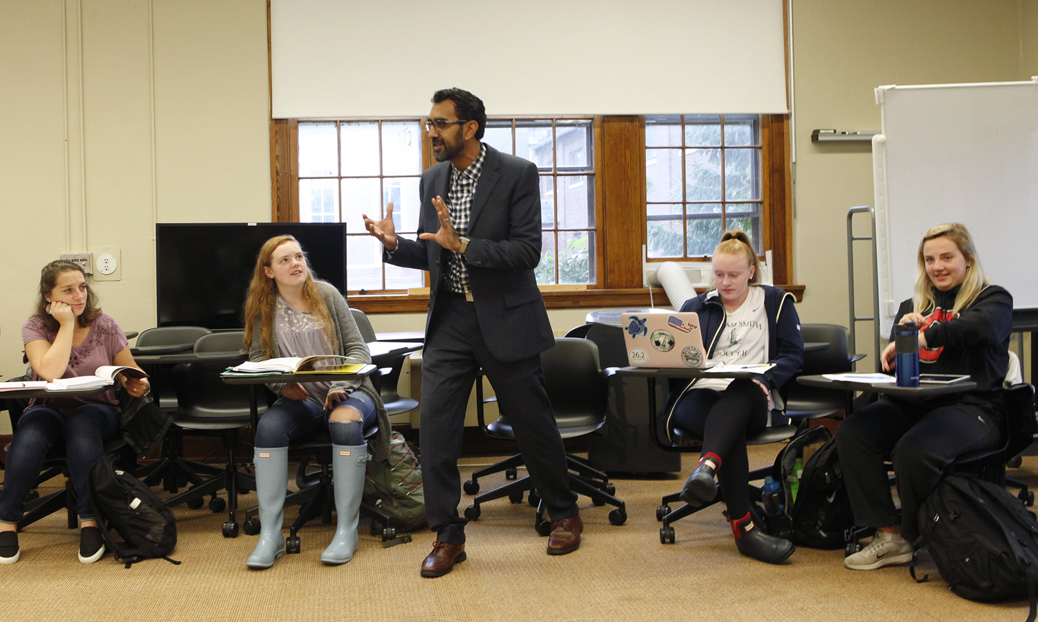 - Dean of Hobart College and Associate Professor of Education Khuram Hussain leads a lecture for Teaching Equity, a class he co-taught with Professor of Education James MaKinster.