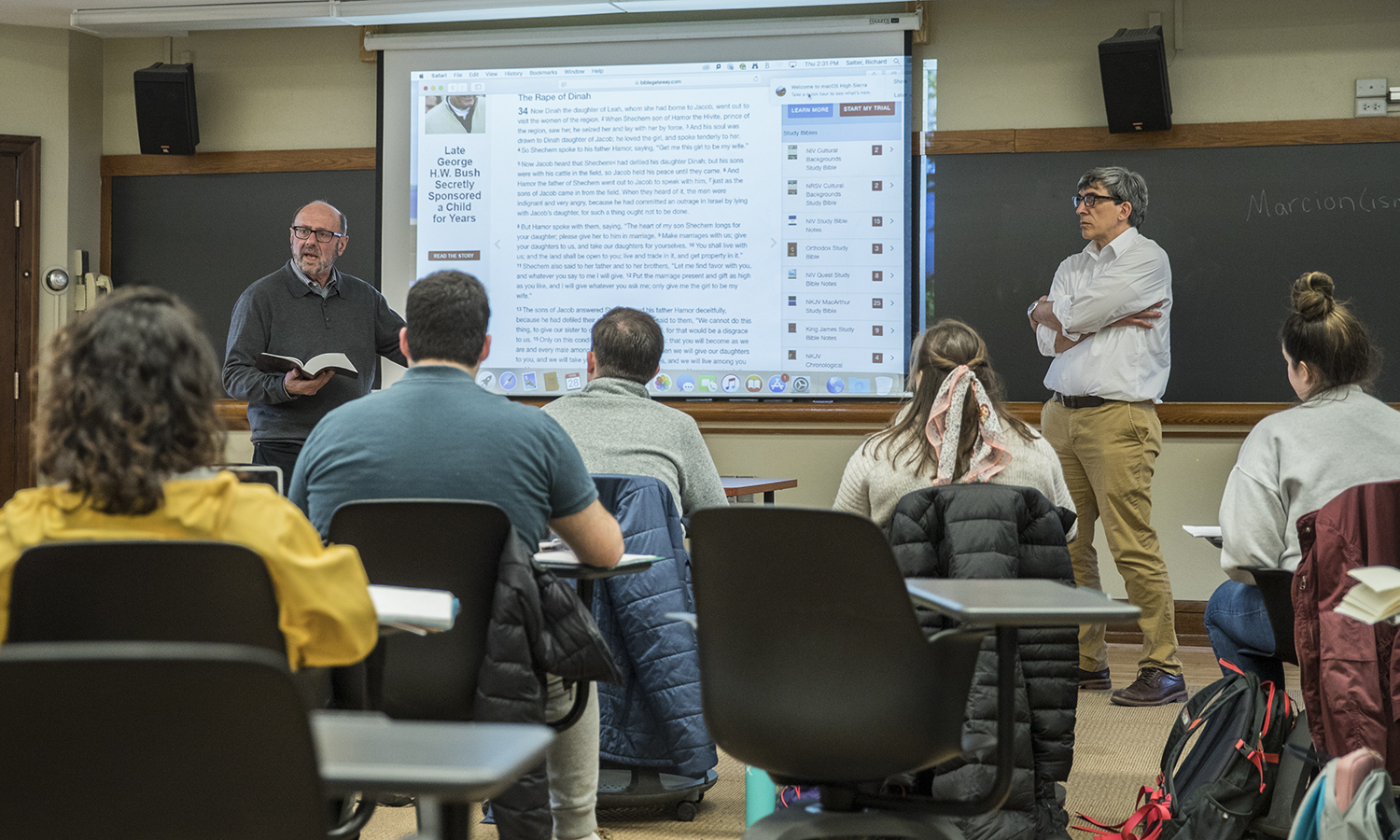 - Professor of Religious Studies Michael Dobkowski and Associate Professor of Religious Studies Richard Salter 86, P15 discuss the book The Red Tent and compare interpretations of biblical stories, predominantly of Dinah, to the text of the Tanakh, during Torah and Testament in Coxe Hall.