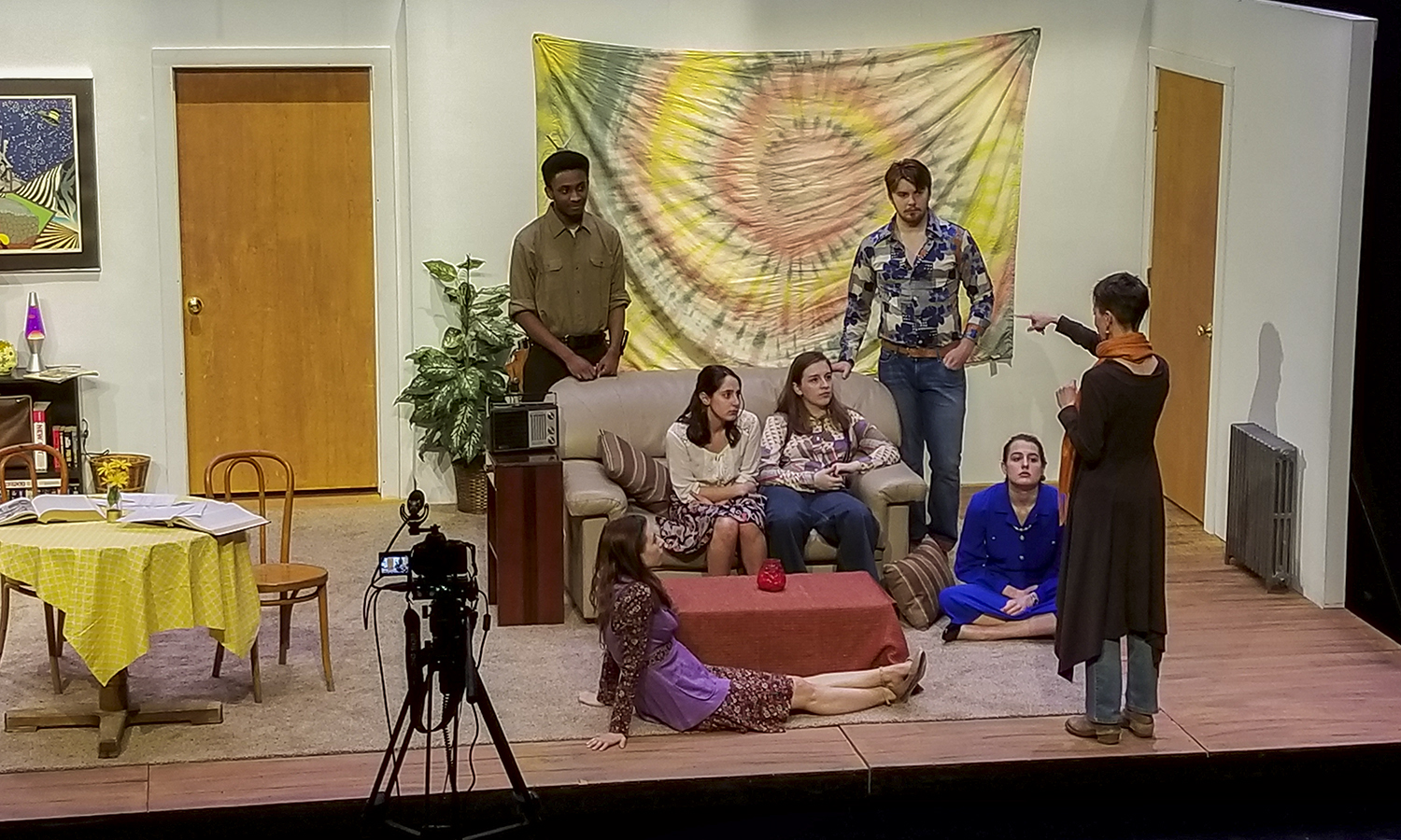 - Associate Professor of Theatre Heather May directs actors during filming of a scene for the theatre production #TheBallantineDays.