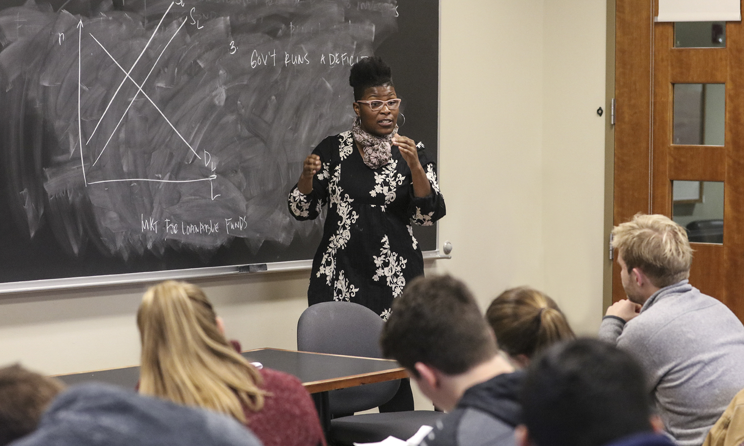- Associate Professor of Economics Keoka Grayson teaches a course in microeconomics.